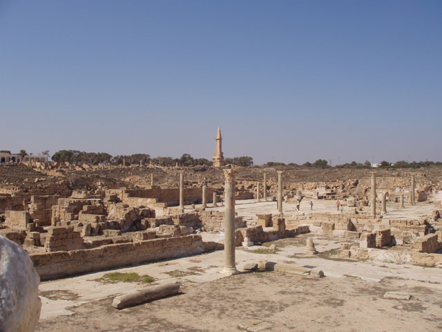 Archaeological Site of Sabratha, Phoenician trading-post was part of the Numidian Kingdom of Massinissa before being Romanized and rebuilt in the 2nd and 3rd centuries A.D. Libya.