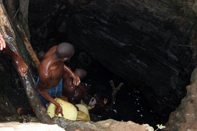 The water is retrieving from 10m deep well by men-chain to small reservoir. Men are singing for better synchronization. Singing well, Dublock. South, Ethiopia.
