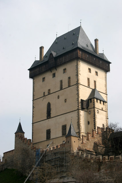 Karlstejn Castle. Gothic castle founded in 1348 by Charles IV. The castle served as a place for safekeeping of royal treasures, the Empire coronation jewels and holy relics. Czech Republic.